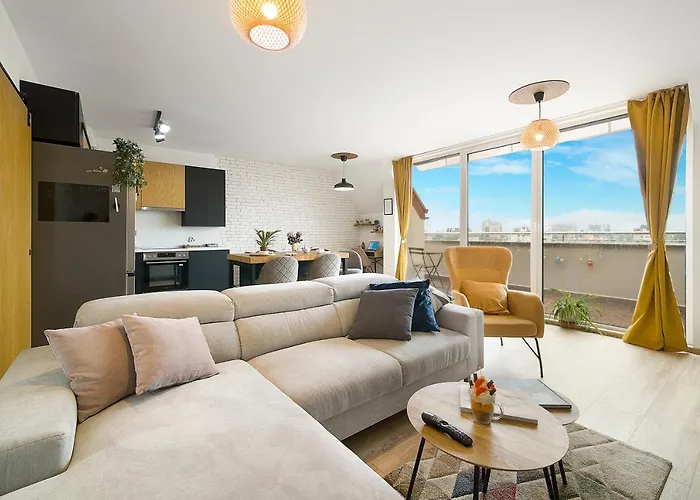 Das 1-Zimmer-Top Central Maisonette With Underground Parking mit einer Fläche von 90 m^2 liegt im Zentrum von Sofia. Das Apartment bietet Ausblicke auf die Berge.